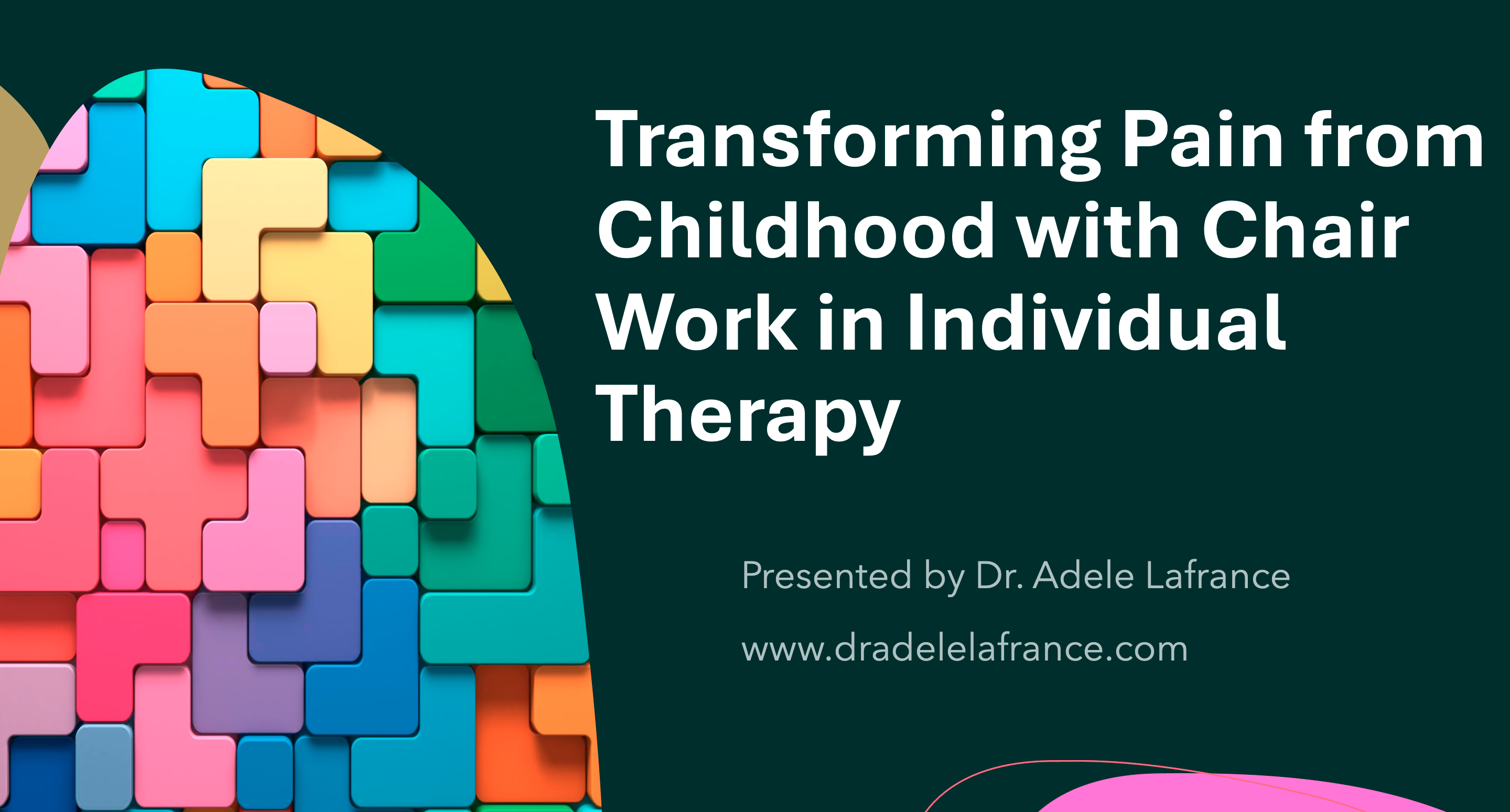 For the chair work enthusiasts, and informed by theories and practices of emotion transformation, EFT and EFFT, this scripted intervention is designed to support an adult client in individual or group therapy to express and transform undifferentiated pain, resentment, hurt, grief, etc related to a primary caregiver. The rationale for letting go of such pain will be presented, as well as an overview of the intervention, and a commentary on each step and sub-step of the script. Additional considerations for implementation will also be shared. Handout of slides and script of the intervention included.